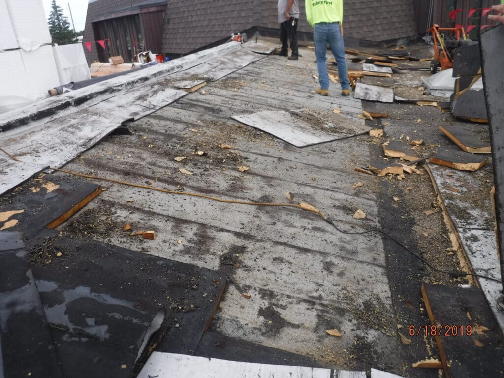 Full tear off down to existing wood deck.