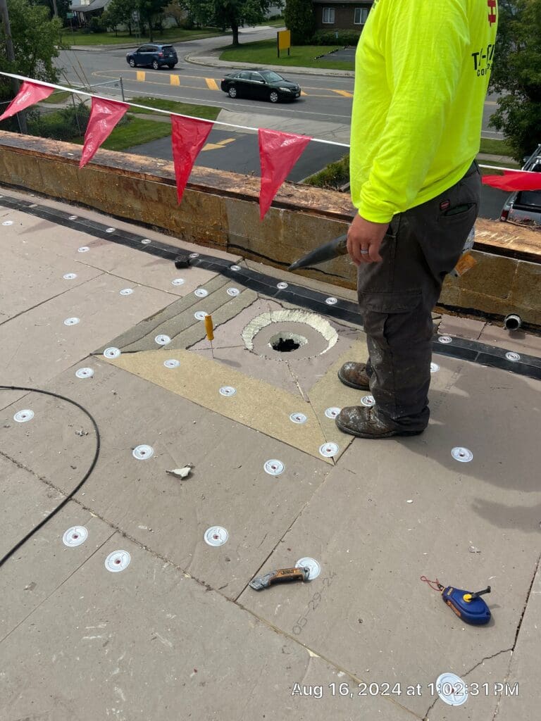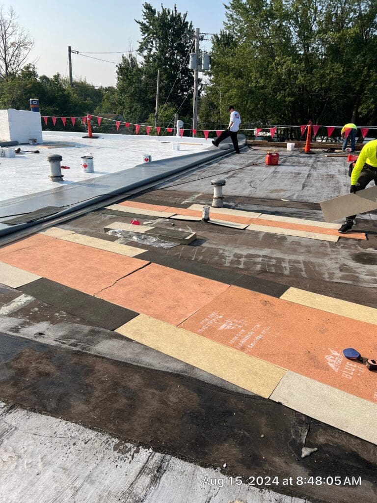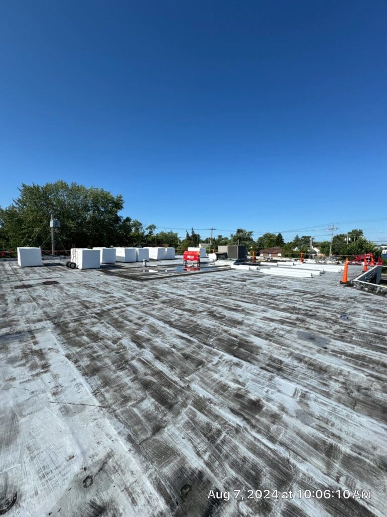 Recover old modified roof with single layer 1.5″ Elevate insulation board.