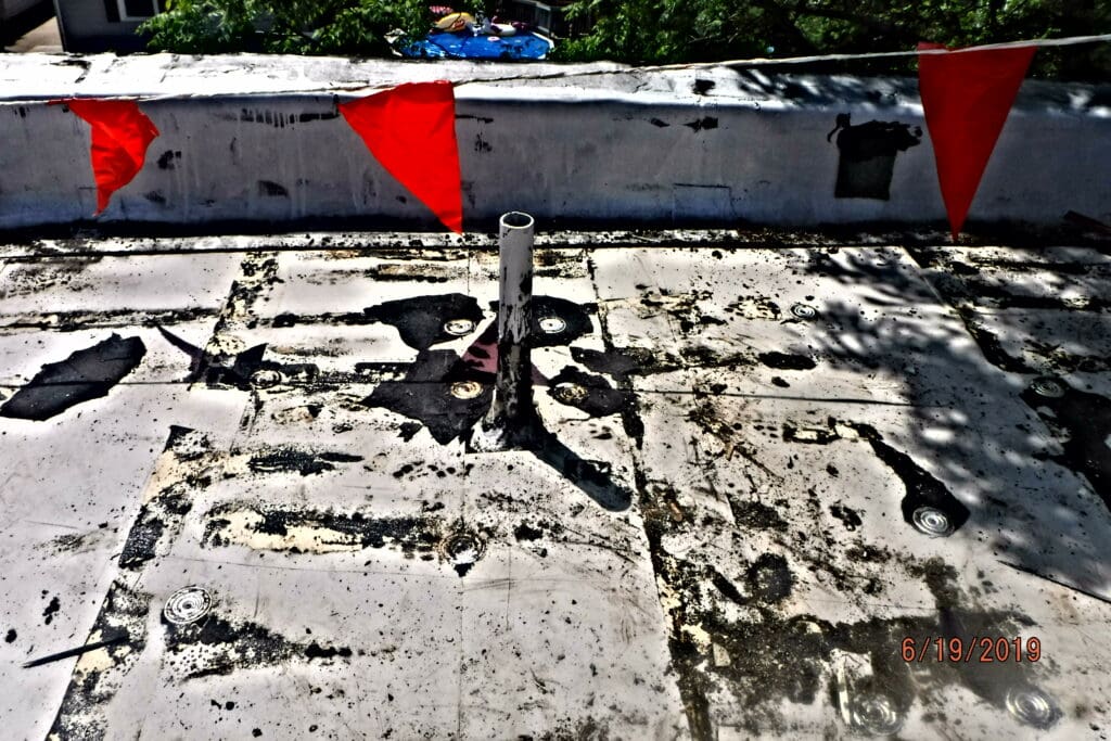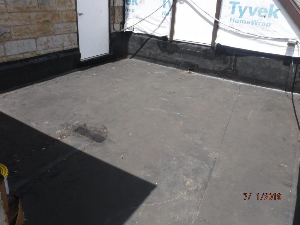 Complete tear off to original wood deck.