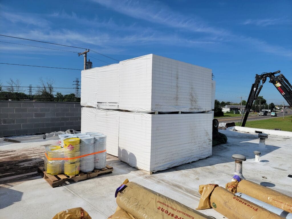 On upper roof, installed a single layer of 1.5″ Elevate insulation.